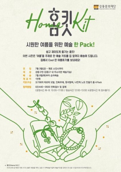 강동문화재단 관계자는 “코로나19 시기에 문화예술을 매개로 비대면 소통을 이루는 방안을 마련하기 위해 노력하고 있다”며 “여름을 맞아 알차게 구성한 ‘홈킷 시즌2’와 함께 집에서도 시원한 여름 휴가를 보내시길 바란다”고 말했다.