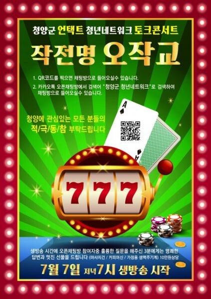 콘서트에 참여하고 싶은 청년이나 주민은 행사 전까지 카카오톡 오픈채팅방에서 ‘청양군 청년네트워크’를 검색해 입장한 후 당일 카카오TV 링크를 받아 실시간 방송에 접속하면 된다.