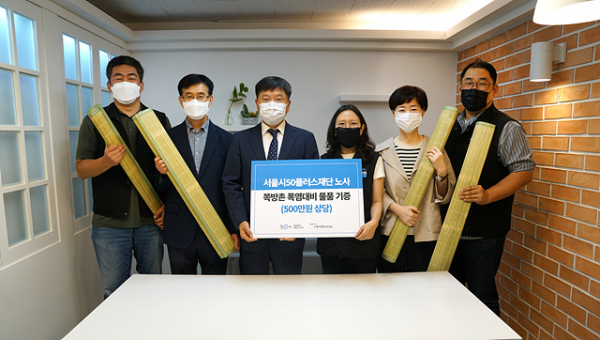 서울시50플러스재단 노사는 올 여름 코로나19라는 전례 없는 비상상황으로 더욱 고단한 삶에 직면할 수밖에 없을 것으로 예상되는 취약계층을 지원하기 위해 폭염대비 용품인 1인용 대나무 돗자리 370개를 구매, 기부하기로 결정했다.