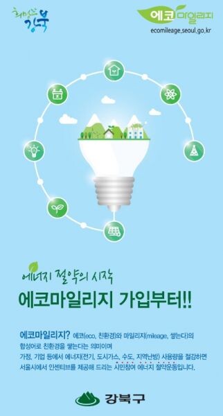 [무한뉴스] 강북구는 에너지 절감률에 따라 마일리지로 돌려주는 에코마일리지 개인·단체 신규회원을 상시 모집하고 있다.