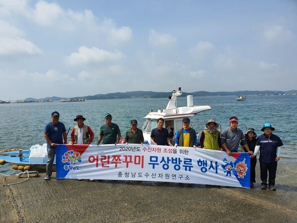 이번에 방류한 어린 주꾸미는 지난 4월 보령에서 주꾸미 어미 2000마리를 구입한 뒤 소라껍질을 이용, 산란유도 과정을 거쳐 확보한 전장 0.05g 크기의 개체다.