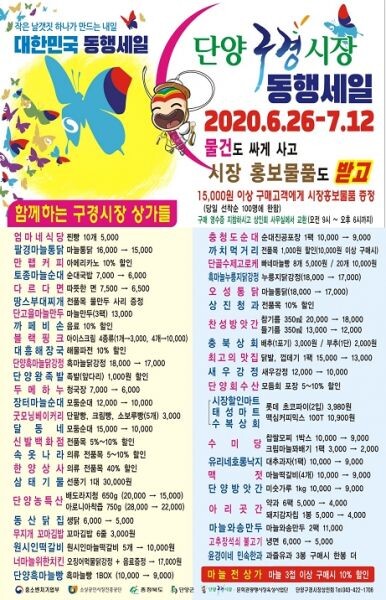 안명환 단양구경시장회장은 “전국 663개 시장이 동참하는 ‘대한민국 동행세일’에 단양구경시장도 발맞추기 위해 동참했다”며 “이번 행사를 통해 단양구경시장 홍보와 함께 지역 상권이 활기를 되찾길 바란다”고 말했다.