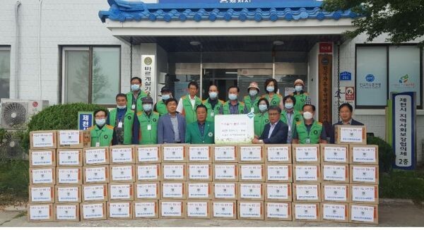 제천시 지역자율방재단은 단원들이 모은 성금으로 라면 50박스를 구입해 사회복지과에 건넸다.
