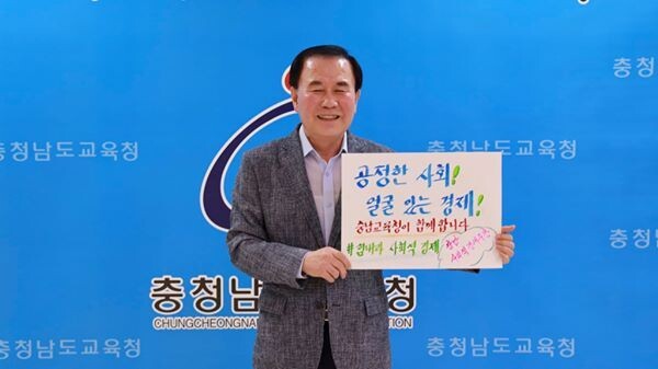 [무한뉴스] 충남교육청 김지철 교육감은 지난 7일 충남 사회적경제 주간을 맞아 ‘공정한 사회 얼굴있는 경제’라는 손글씨 응원 이어가기에 동참했다.