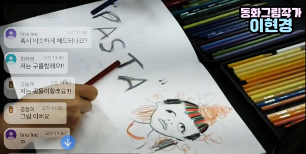 건축가체험에 이어 7월 4일 초등 3~4학년 대상으로 진행된 ‘동화그림작가 체험’은 강사가 그림책 그리기를 먼저 시연하고 학생들이 미리 수령한 그림책 제작 키트로 직접 체험을 해보는 방식으로 진행됐다.
