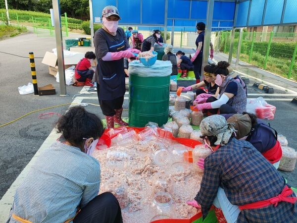 공동구매한 새우젓 소분작업에 참여한 읍·면회장들은 바쁜 농사일이 있음에도 불구하고 전원 참석해 조금이나마 이웃을 위해 일 할 수 있어 뿌듯함을 표했다.