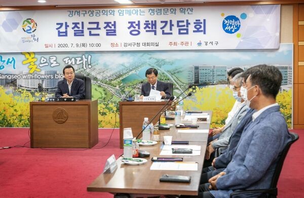 간담회는 김병희 강서구상공회장을 비롯해 상공회 임원진, 구청 감사담당관 등 최소인원만 참석한 가운데 서한문 전달식, 민간부문 갑질 근절을 위한 정책협의 순으로 진행됐다.