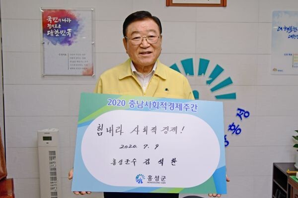 [무한뉴스] 김석환 홍성군수는 지난 9일 2020년 충남 사회적경제 주간을 맞아 ‘힘내라, 사회적경제’ 손글씨 릴레이 응원 캠페인에 동참했다.