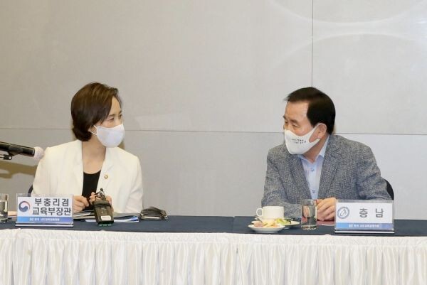 [무한뉴스] 충남교육청 김지철 교육감은 지난 9일 부여 롯데리조트에서 개최한 ‘포스트 코로나 교육 대전환을 위한 전국시도교육감협의회-교육부’ 간담회에 참석했다.