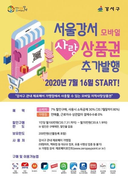 [무한뉴스] 서울 강서구는 코로나19 피해 극복을 위한 민생경제 지원방안으로 ‘서울강서사랑상품권’을 추가 발행한다고 밝혔다.