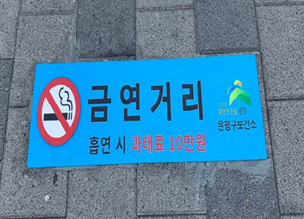은평구 지정 금연거리는 대성중학교 외 2개교 및 구파발역 일대이며 금연거리의 훼손된 바닥 표지판을 정비해 구민들의 안전문제를 해결하고 미관을 개선해 쾌적한 금연거리를 조성했다.