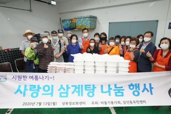 [무한뉴스] 성북구 삼선동 나눔이웃인 비둘기봉사회는 갈수록 더워지는 여름을 대비해 지난 7월 13일 저소득 가구 어르신을 위해 삼계탕을 만들어 각 가정으로 전달하는 행사를 진행했다.
