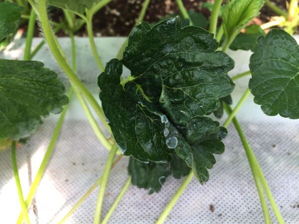 딸기 육묘기에 붕소 부족이 생기면 자묘의 잎이 쭈글쭈글해지고 짙은 녹색을 띠며 심한 경우에는 신엽이 제대로 만들어지지 못해 정식묘로 이용할 수 없게 된다.