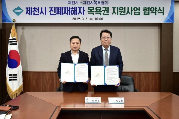 보건소는 지난해 제천시목욕협회와 업무협약을 체결하고 만 65세 이상 의 진폐재해자에게 1회당 6천원 상당인 목욕권을 매월 2매씩 반기별로 지급하고 있다.