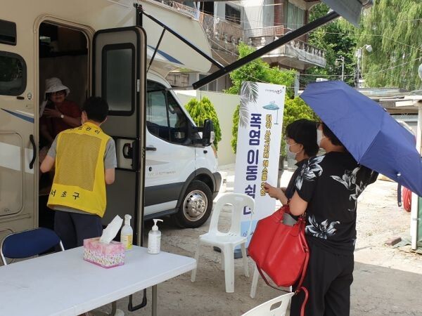 캠핑카를 활용한 폭염이동쉼터는 잠원동 나루마을, 방배동 전원마을과 같은 폭염취약지역 위주로 매주 평일 10시부터 19시까지 장소를 이동해가면서 운영한다.