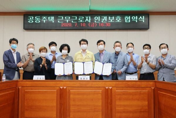 세 기관은 공동주택 근무근로자 고용안정 및 처우 개선, 부당한 업무 지시 금지를 약속하고 필요한 정책을 수립하기로 협약했다.