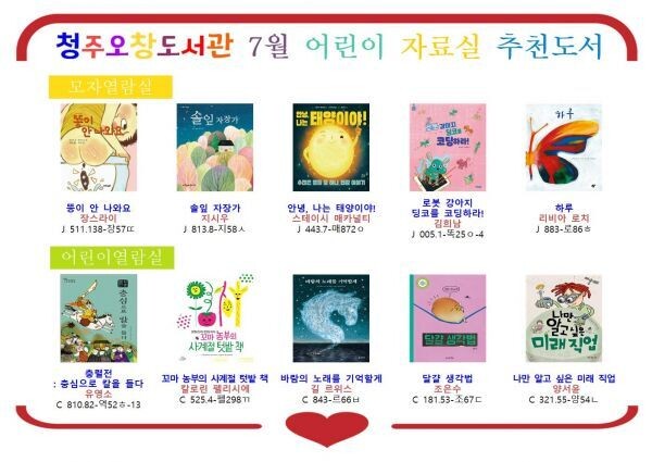 이 추천도서는 청주오창도서관 2층 어린이자료실에서 대출 가능하며 마스크 착용은 필수다.