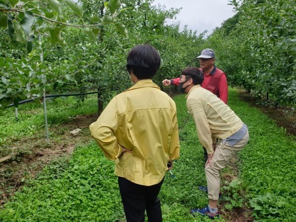 [무한뉴스] 충북 영동군이 장마와 집중호우로 인한 주요 과수의 피해 최소화를 위해 현지지도를 강화하며 과원관리 및 병해충 적기 방제를 당부하고 있다.