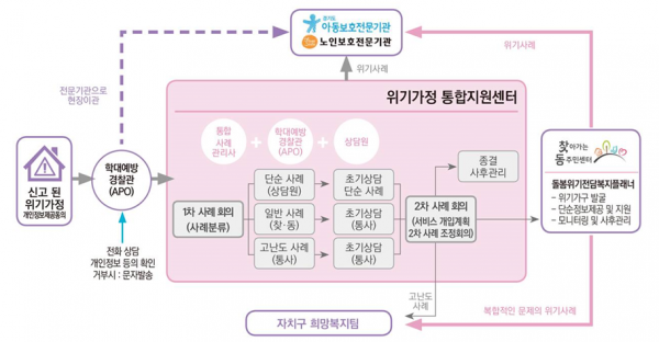 서울시와 서울지방경찰청은 ‘위기가정 통합지원센터’를 통해 이처럼 폭력, 학대, 방임 등의 문제로 고통받고 있는 위기가정을 찾아내고 발견·신고된 위기가정에 대해 초기상담부터 통합적 사례관리, 서비스 연계와 복지서비스 제공, 사후관리까지 원스톱으로 전담한다고 밝혔다.