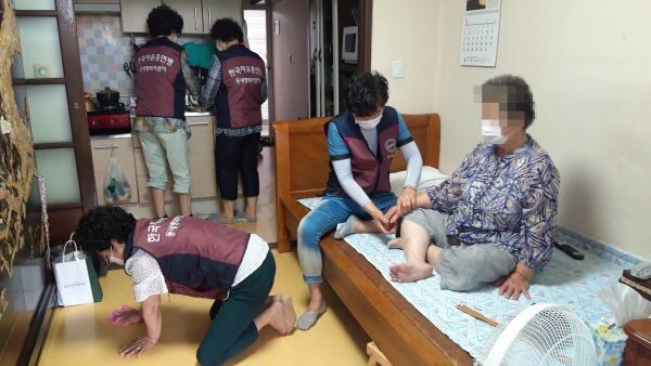 회원들은 사회적 고립에 취약한 독거노인 가정을 방문해 청소, 설거지 등 집안 정리를 하고 쌀, 화장지, 세제 등 생필품을 지원했다.