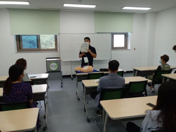 이번 교육은 도서관 내에서 심정지 환자가 발생했을 때를 대비하기 위한 것이다.
