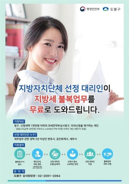 [무한뉴스] 도봉구는 지방세와 관련해 이의가 있는 경우 무료로 법령검토와 자문, 증거서류 보완 등 불복절차를 도와주는 ‘선정 대리인 제도’를 시행한다.