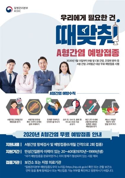 이에 적시 예방접종은 필수이며 구는 A형간염 감염시 합병증으로 인해 사망률이 높은 고위험군을 대상으로 A형간염의 무료 예방접종을 안내·권고하고 있다.