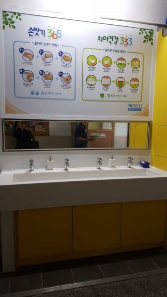 양치대는 아이들의 눈높이에 맞춘 디자인으로 자연스럽게 친구들과 함께 양치하는 습관을 심어줄 수 있게 고안해 기존 화장실과는 별도로 아이들이 쉽게 이용할 수 있는 복도 또는 급식실 옆에 설치된다.