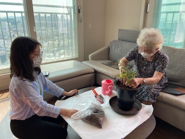찾아가는 방문형 치매환자쉼터 ‘기억청춘열차’는 경증치매환자를 대상으로 작업치료사가 직접 가정을 방문해 태블릿 PC를 활용한 인지강화 프로그램, 원예활동, 미술활동 등 대상자에게 1:1 맞춤형 인지재활 프로그램을 제공한다.