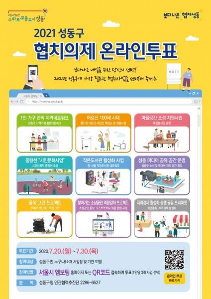 [무한뉴스] 서울 성동구가 지난 7월 20일부터 오는 30일까지 11일간 ‘2021년 지역사회혁신계획 수립을 위한 온라인 주민투표’를 실시한다고 밝혔다.