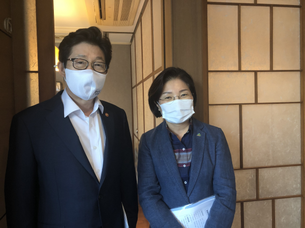 [무한뉴스] 김미경 은평구청장이 지난 17일 조명래 환경부 장관을 만나 은평구의 환경정책을 논의하는 자리에서 기후변화 대응예산 확대를 위해 ‘환경개선 부담금’의 지자체 배분 비율을 높여 달라고 건의했다.