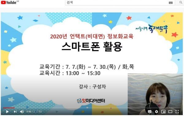 코로나19 장기화로 ‘구민정보화교육장’을 휴관한 구는 온라인 강의를 통해 주민들에게 지속적인 정보화교육의 기회를 제공하고자 7월부터 유튜브 채널을 통한‘온라인 구민 정보화교육’을 진행하고 있다.