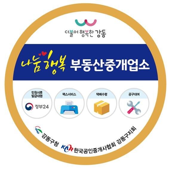 이에 구가 한국공인중개사협회 강동구지회 소속 51개 중개업소를 지역주민을 위해 사무기기 등을 공유하는 서비스인 ‘나눔행복 중개업소’로 운영한다.