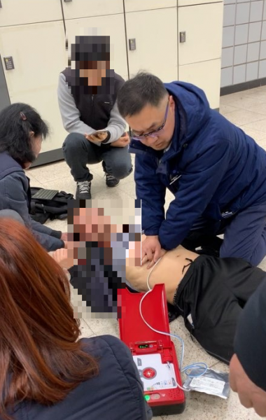 이후 역사 내 비치한 자동심장충격기를 가져와 사용하자 승객은 다행히도 숨을 다시 쉬기 시작했다.