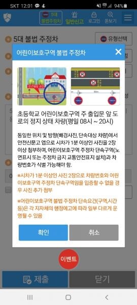신고대상은 평일 오전 8시부터 오후 8시까지 어린이보호구역 내 절대 주정차 금지구역인 ‘황색복선’ 구간에 불법주정차 한 차량이다.