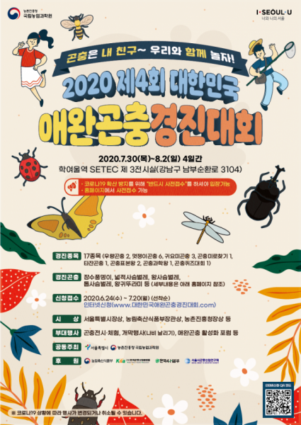 [무한뉴스] 서울특별시와 농촌진흥청은 ‘2020 제4회 대한민국 애완곤충경진대회’를 오는 30일부터 8월 2일까지 총 4일간 세텍에서 공동으로 개최한다고 밝혔다.