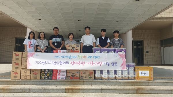 이날 행사에는 ㈜프레스코, ㈜동원제관, ㈜천지건업, 태평양에어콘트롤, ㈜열린문디자인, ㈜삼아인터내셔날, 온주곰탕 등 아산시기업인협의회 회원사들이 참여했다.
