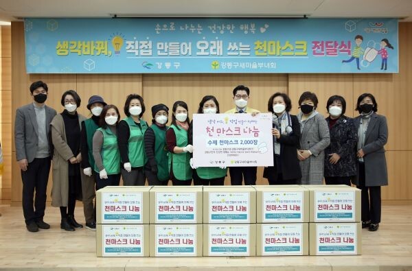 코로나19로 마스크 대란이 일어났던 지난 2월, 구와 강동구새마을부녀회가 힘을 모아 아동용 천마스크 1500개를 직접 제작해 어린이집에 전달했으며 이를 시작으로 지금까지 어린이집 영유아 및 보육교직원들의 건강과 안전을 위해 마스크 160만개, 손소독제 4만개, 체온계 600개 등 코로나19 대응 방역물품을 지원했다.