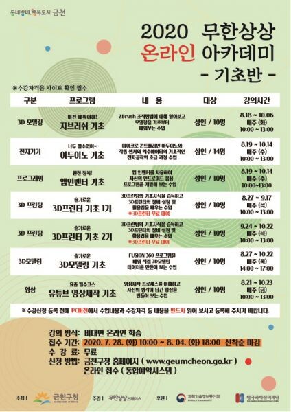 [무한뉴스] 금천구가 오는 8월 18일부터 10월 23일까지 무한상상스페이스에서 새로운 패러다임의 비대면 ‘무한상상 온라인 강좌’를 진행한다.