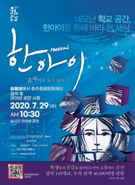 코로나19 상황으로 시민 안전을 위해 무관중 온라인 공연으로 진행되는 이번 공연은 충주교육지원청의 협조로 초·중등학교 교실에서 학교폭력 예방 교육교재로 사용될 예정이다.