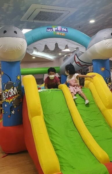 영유아의 안전한 놀이를 위해 에어바운스 정상 작동 여부를 확인한 후 대여가 이루어진다.