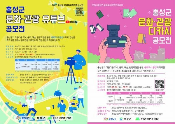 서계원 문화관광과장은 “코로나 19로 위축된 군민들에게 비대면 문화활동의 참여기회가 되길 바란다”며 “홍성군의 아름다운 역사·문화·예술·관광자원을 발굴해 문화도시 홍성의 이미지를 널리 알릴 수 있는 좋은 계기가 될 것”이라고 강조했다.