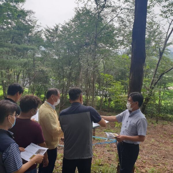 [무한뉴스] 이상원 청주시 푸른도시사업본부장이 27일 상당구 미원면 소재 옥화자연휴양림 내 숲 체험 놀이터 조성 공사현장을 점검했다.