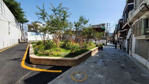 소방도로 확보를 위해 골목길 폭을 대폭 넓혀 정비하고 주변 주택의 대문과 담장을 낮추고 건물 외벽을 정비해 벤치와 화단 등을 조성했다.
