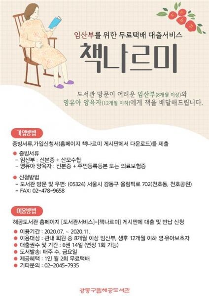 먼저, 강동구립 해공도서관은 임산부를 위한 무료 택배 도서대여 서비스 ‘책나르미’를 선보인다.