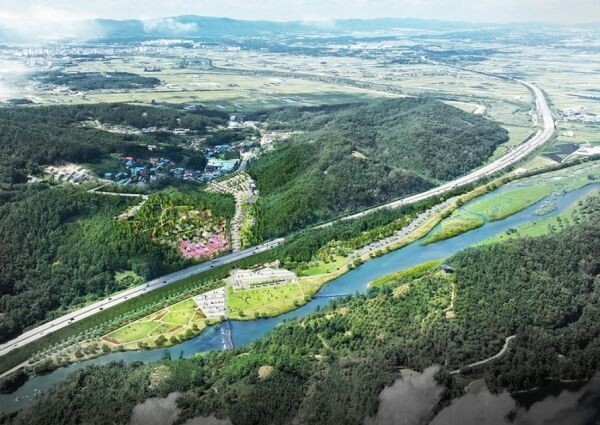 생태문화 공원은 농다리 옆 주차공간과 일부 구간의 갈대 습지를 활용해 데크쉼터, 식물원, 치유정원 등이 53,037㎡ 규모로 조성된다.