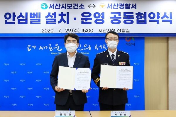 [무한뉴스]서산시가 지난 29일 시청 상황실에서 서산경찰서와 보건소 안심벨 설치·운영 협약을 체결했다고 밝혔다.