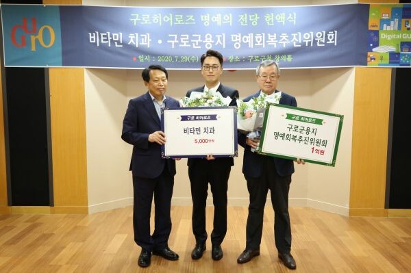 헌액식에 참석한 이성 구청장은 기부자들에게 사회공헌인증서를 수여하고 구청 1층 명예의 전당에 구로히어로즈 명패를 등재했다.