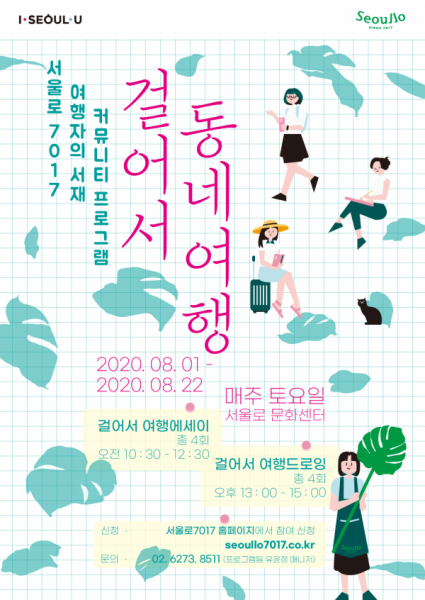 [무한뉴스] 서울시는 서울로 7017 서울로문화센터에서 오는 8월 1일부터 22일까지 매주 토요일 ‘여행자의 서재, 걸어서 동네여행’ 커뮤니티 프로그램을 개설하고 도보여행을 주제로 한 ‘걸어서 여행에세이’, ‘걸어서 여행드로잉’ 강좌를 진행한다고 밝혔다.