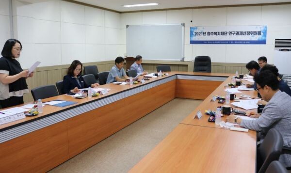 [무한뉴스] 청주복지재단이 30일 재단 회의실에서 ‘2021년 연구과제 선정위원회’를 열어 연구과제 제안 공모전에 접수된 청주시민의 연구제안서를 심의했다.